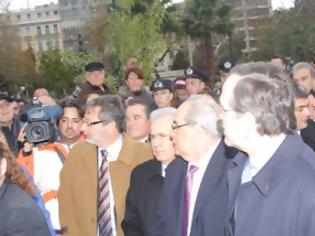 ομάδα πολιτών κατα την αποχώρηση του πρωθυπουργού Αντώνη Σαμαρά και του δημάρχου Βασίλη Μιχαλολάκο απο την τελετή Αγιασμού των Υδάτων στο λιμάνι.